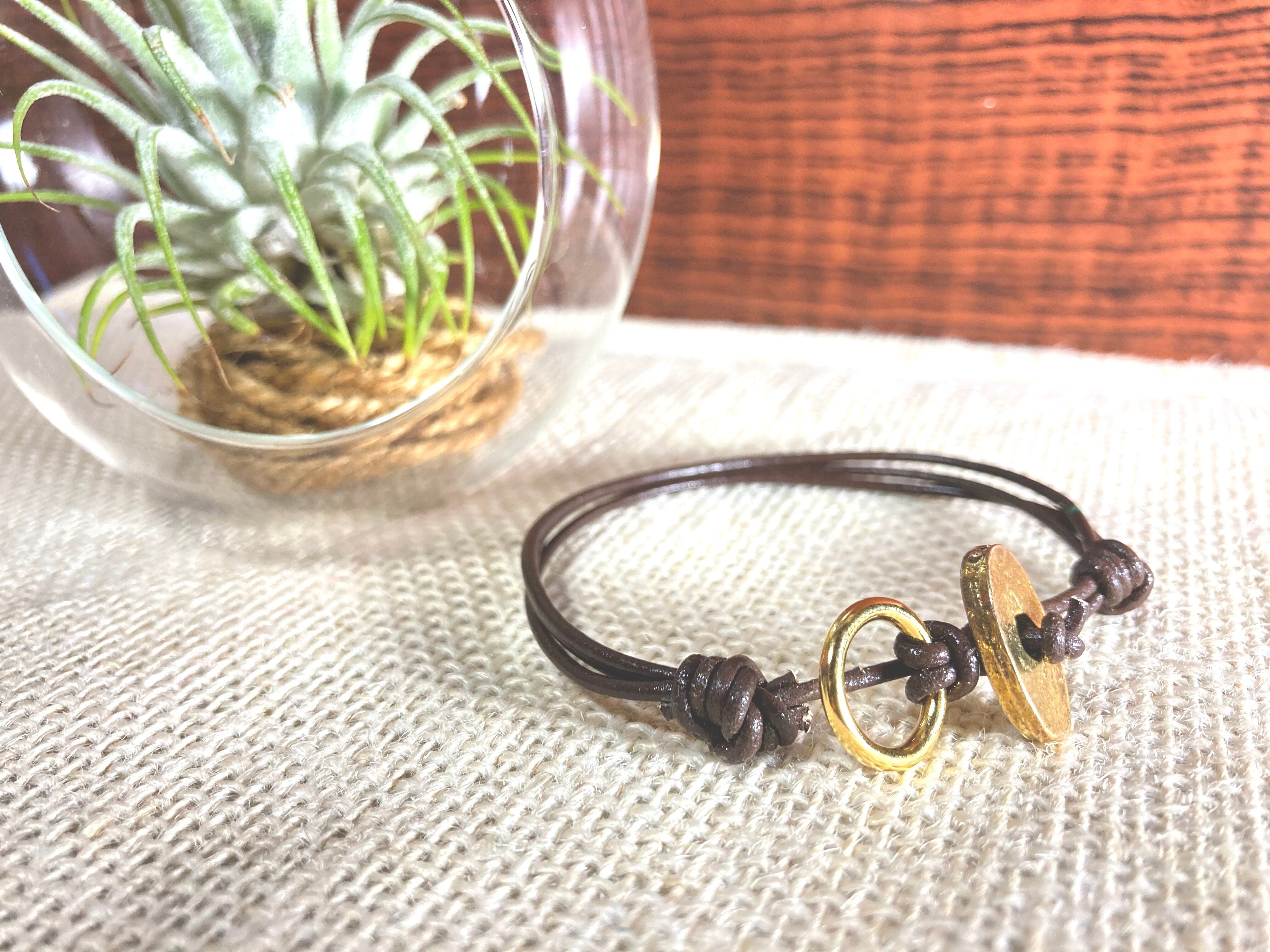 水牛製レザーハンドメイドブレスレット ブラウン【胴鳴り=HIKARI(胴鳴りと光)】