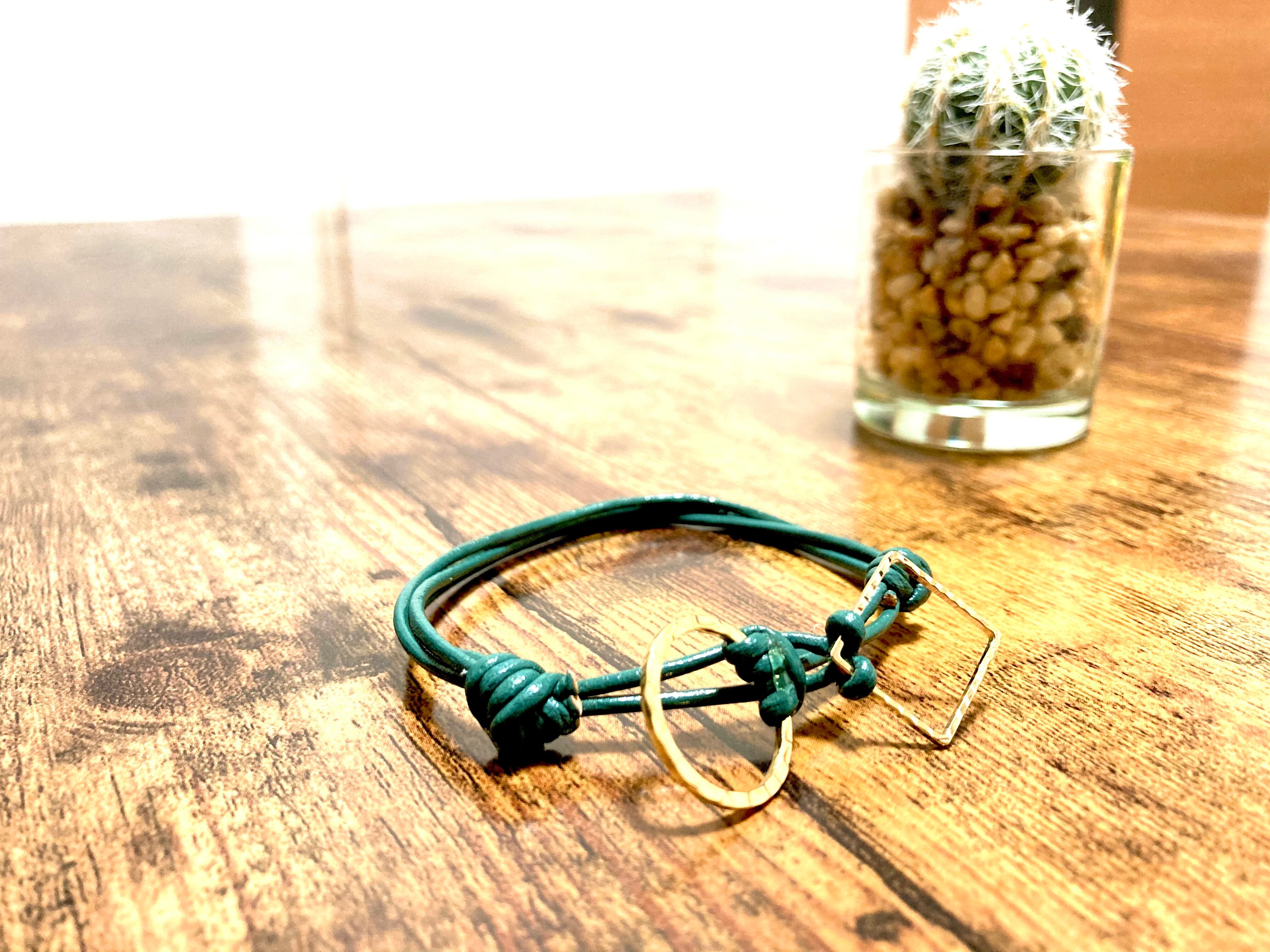 神楽や剣舞などで踏む四方、また厄払いを願い・イメージした水牛製レザーハンドメイドブレスレット